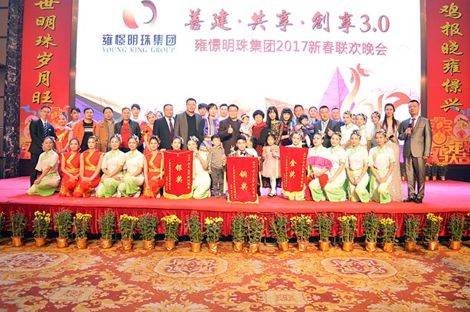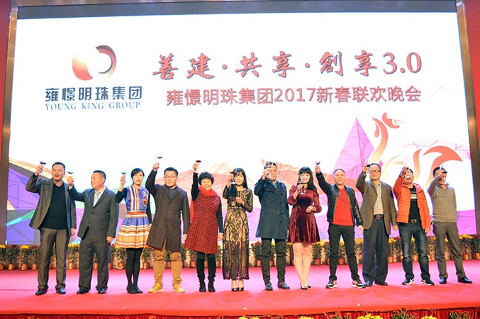 雍憬明珠集团员工春晚晚宴雍憬明珠集团董事长陈贤初先生、酒店执行董事陈盛初先生给员工带来节日祝福
